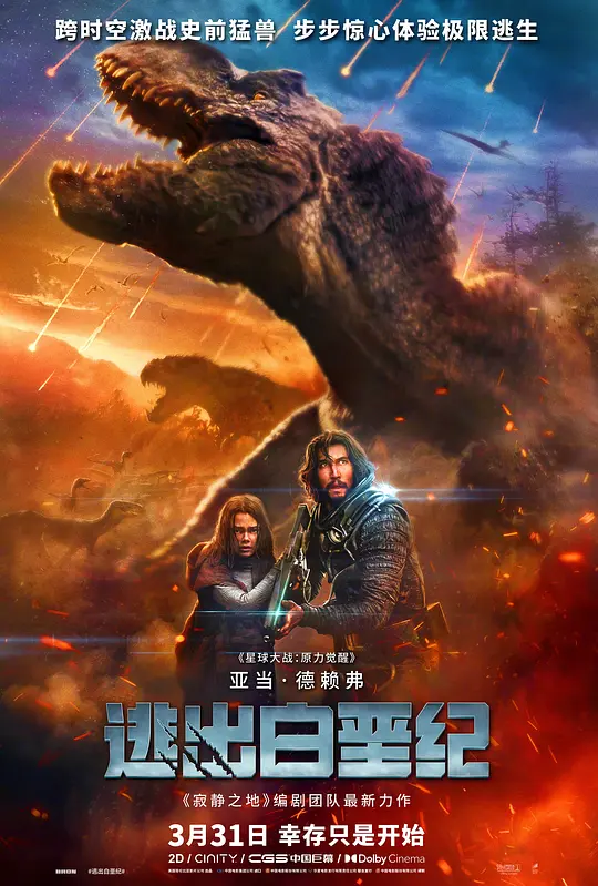 飞船坠毁在未知的星球上,飞行员米尔斯(亚当·德赖弗 Adam Driver 饰)发现自己竟被困在了6500万年前的地球上。此时只有一个获救的机会,他和另一位仅有的幸存者寇娅(阿丽亚娜·格林布拉特 Ariana Greenblatt 饰)要在这片充满危险史前生物的未知环境中极限求生。收起